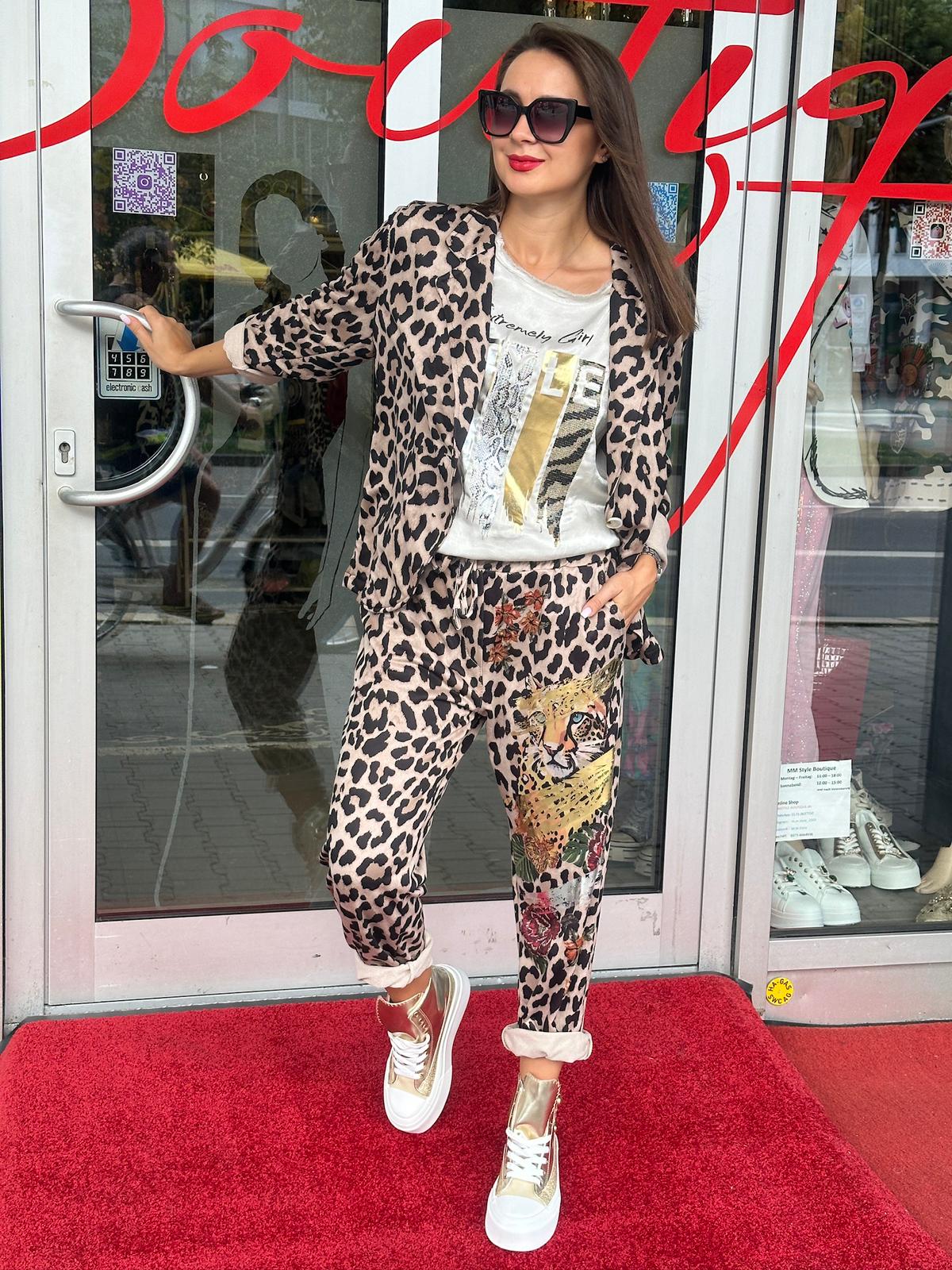 * Kombiniere die Hose mit der passenden Leopardenmuster-Jacke für ein komplettes Outfit.