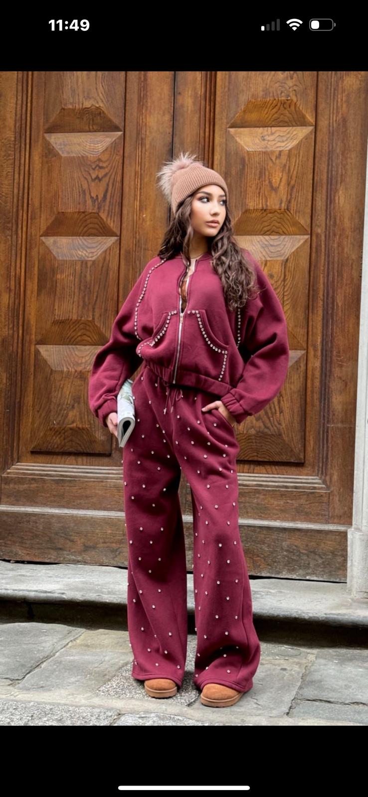 Stylisch und bequem – unser Kombi-Set ist die perfekte Wahl für einen trendigen Look! Das Set besteht aus einem gemütlichen Oversize-Zip-Hoodie und einer weiten Hose, beide verziert mit eleganten Perlendetails, die dem Outfit einen Hauch von Glamour verleihen.