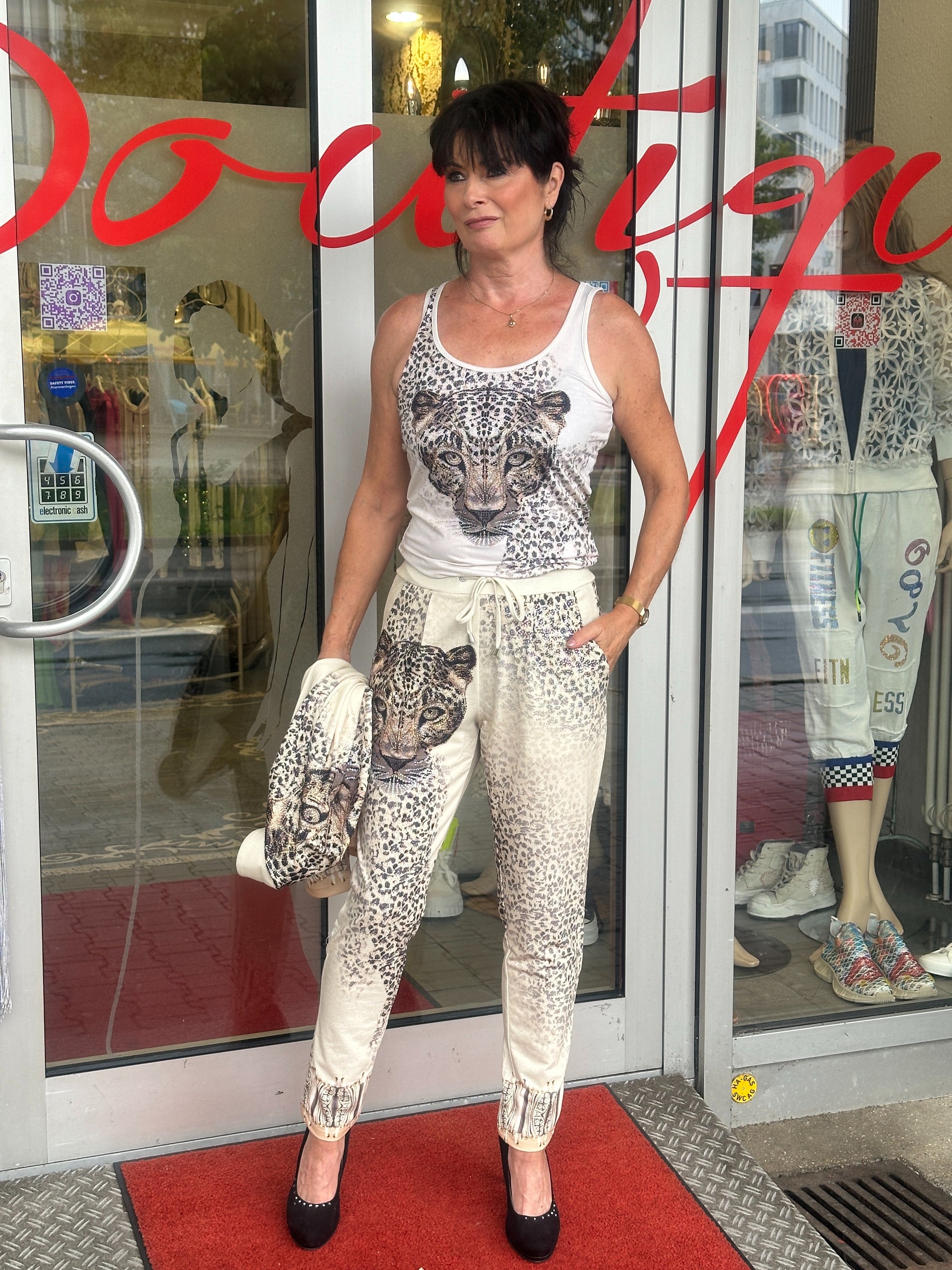 Dieses Modell ist einfach edel! Die helle Basis in Creme mit dem raffinierten Panther-Print wirkt auf Fotos schon sehr elegant, aber live entfaltet es erst richtig seine Wirkung.