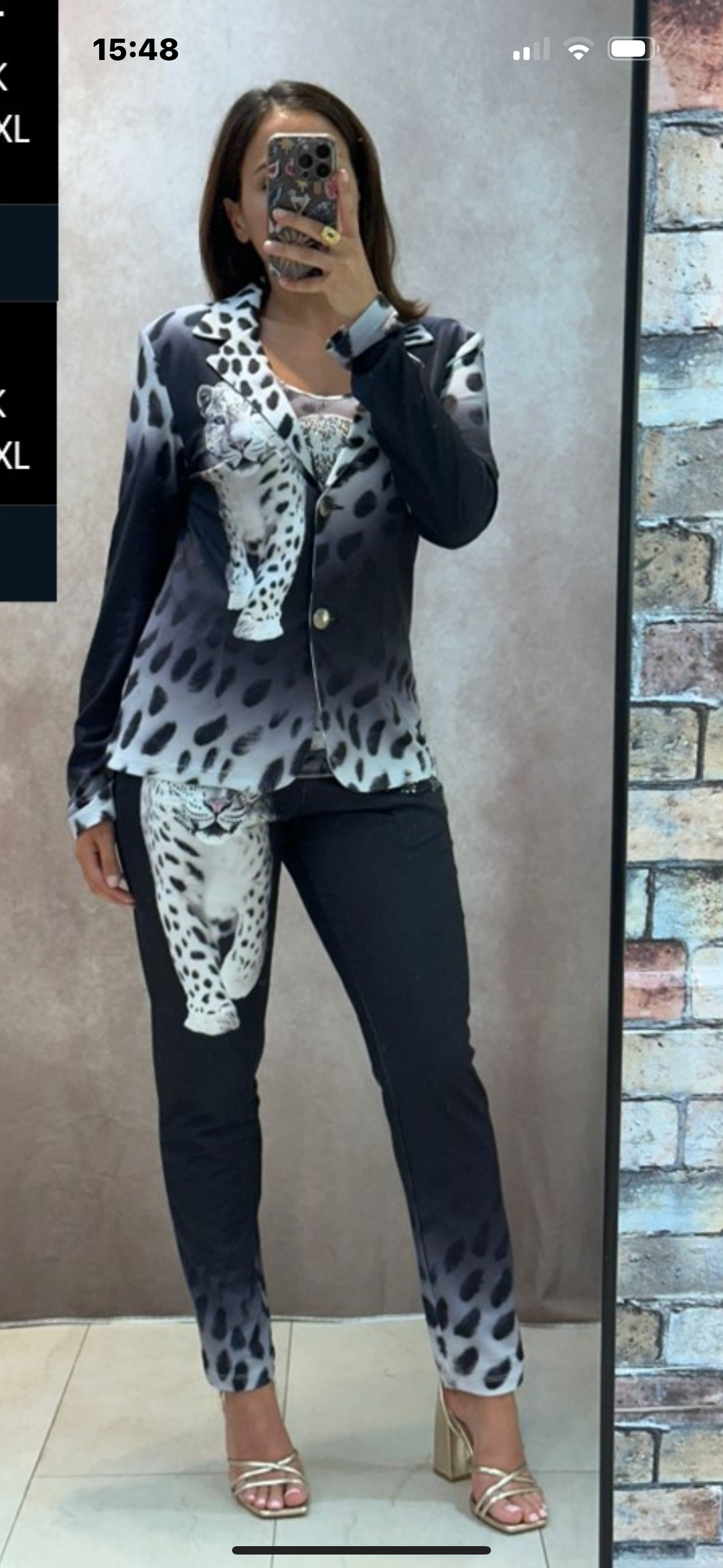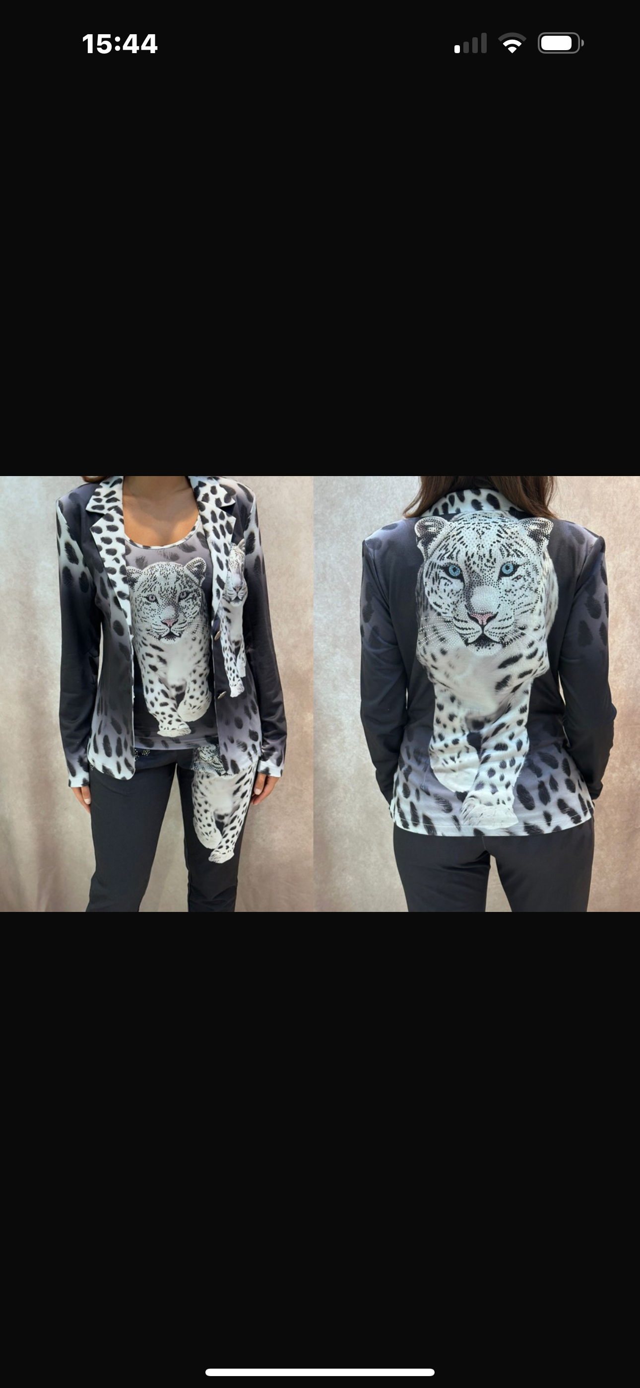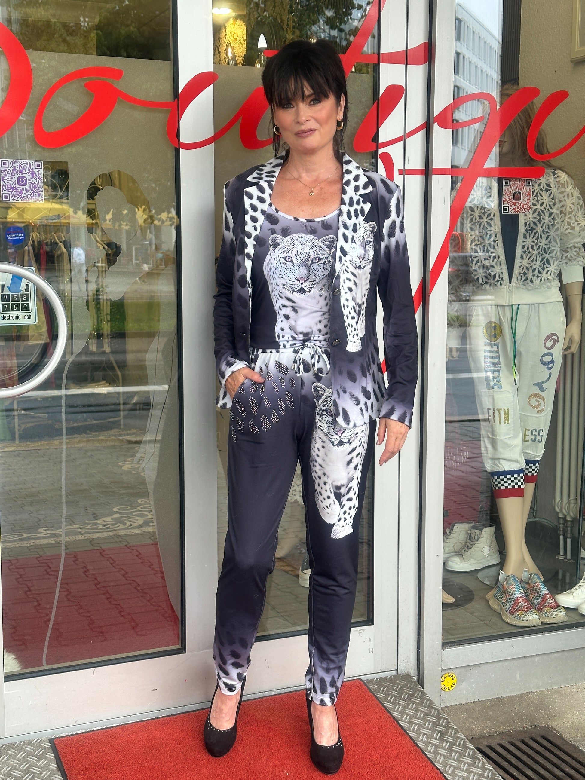 Ein ausdrucksstarker Dreiteiler mit cooler Schwarz-Weiß-Optik und auffälligem Schneeleoparden-Motiv. Der Print sieht schon auf dem Foto stark aus – aber live ist das ein absoluter Hingucker!