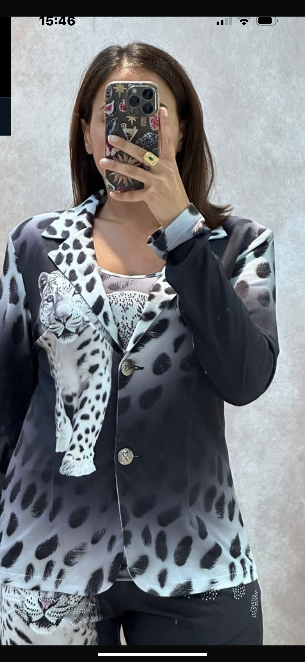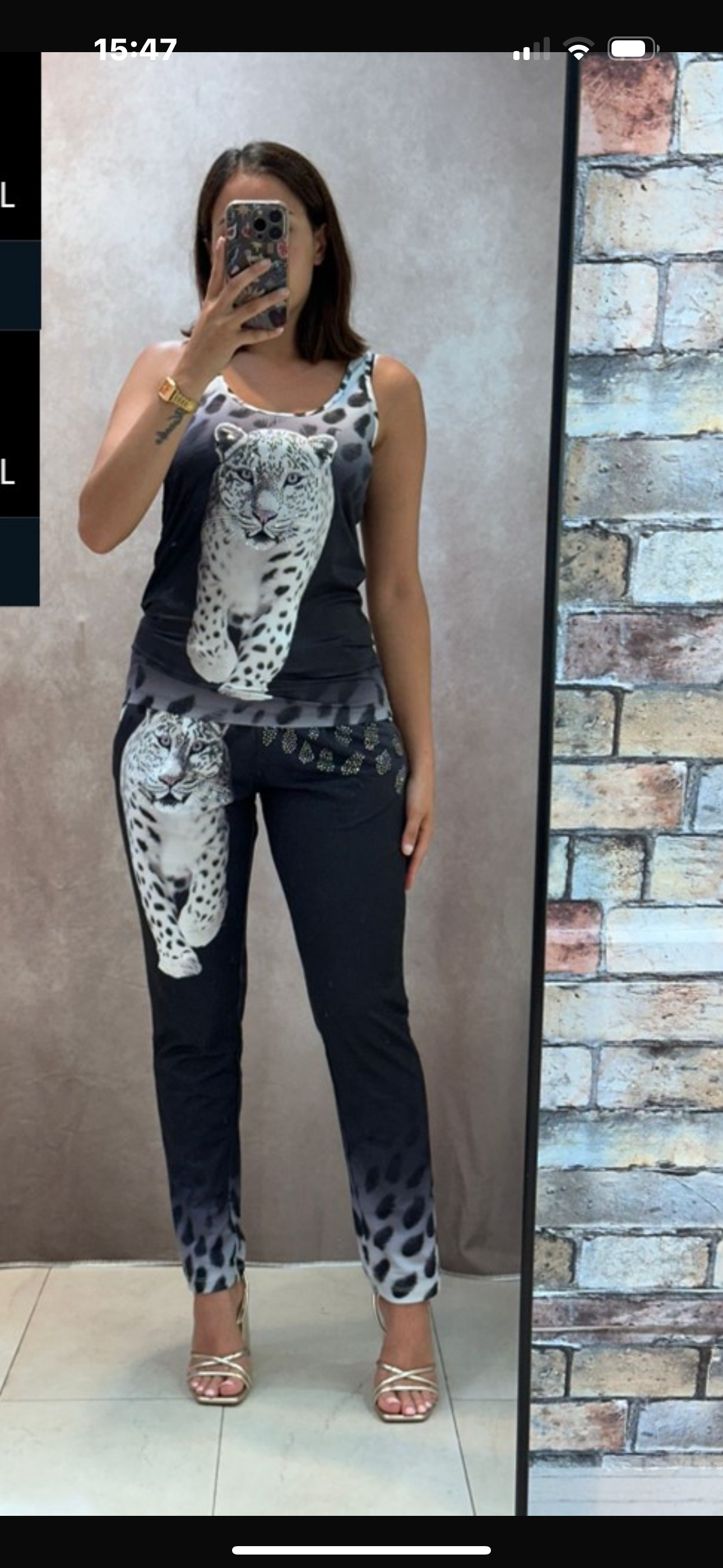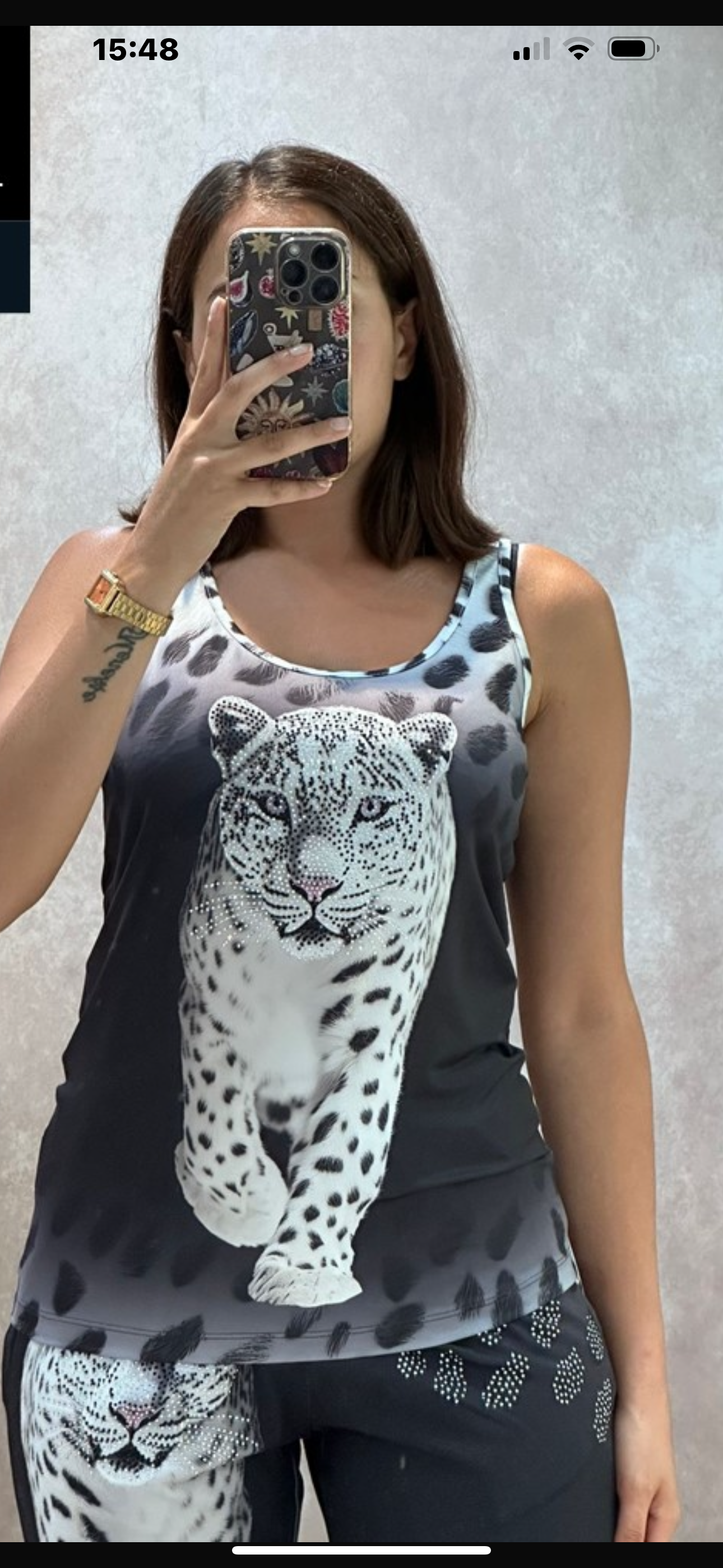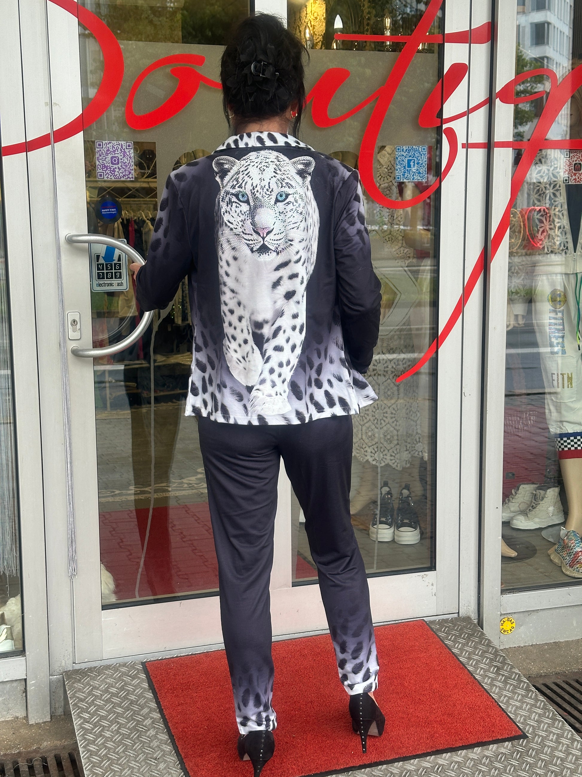 Ein ausdrucksstarker Dreiteiler mit cooler Schwarz-Weiß-Optik und auffälligem Schneeleoparden-Motiv. Der Print sieht schon auf dem Foto stark aus – aber live ist das ein absoluter Hingucker!