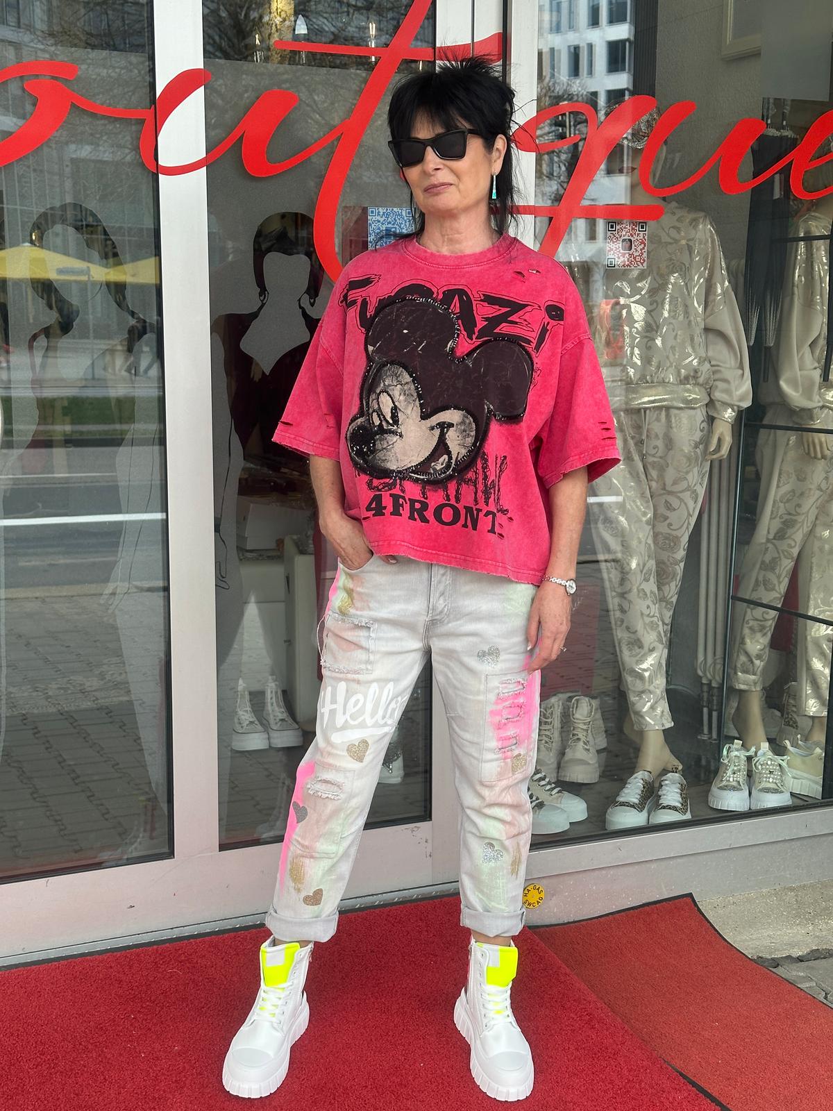 Dieses trendige Oversize-T-Shirt ist ein echter Hingucker und verleiht jedem Outfit eine verspielte Note. Mit seinem auffälligen MM- und Statement-Print, dem trendigen Used-Look und der verwaschenen Farbe ist es ein Must-Have für die kommende Saison.