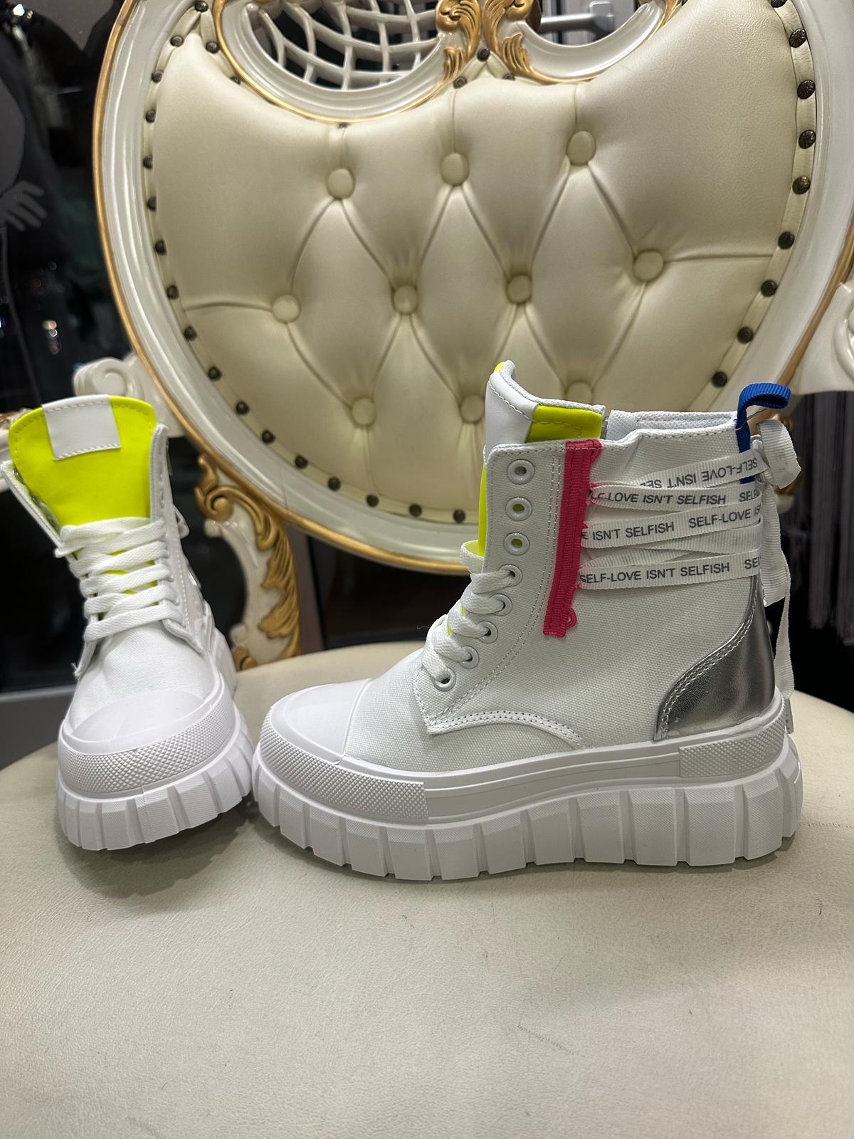 "Entdecken Sie unsere trendigen weißen Sneaker, die mit farbenfrohen Details und einem einzigartigen Design begeistern! Diese Sneaker sind der perfekte Begleiter für alle, die Komfort und Stil zugleich suchen.