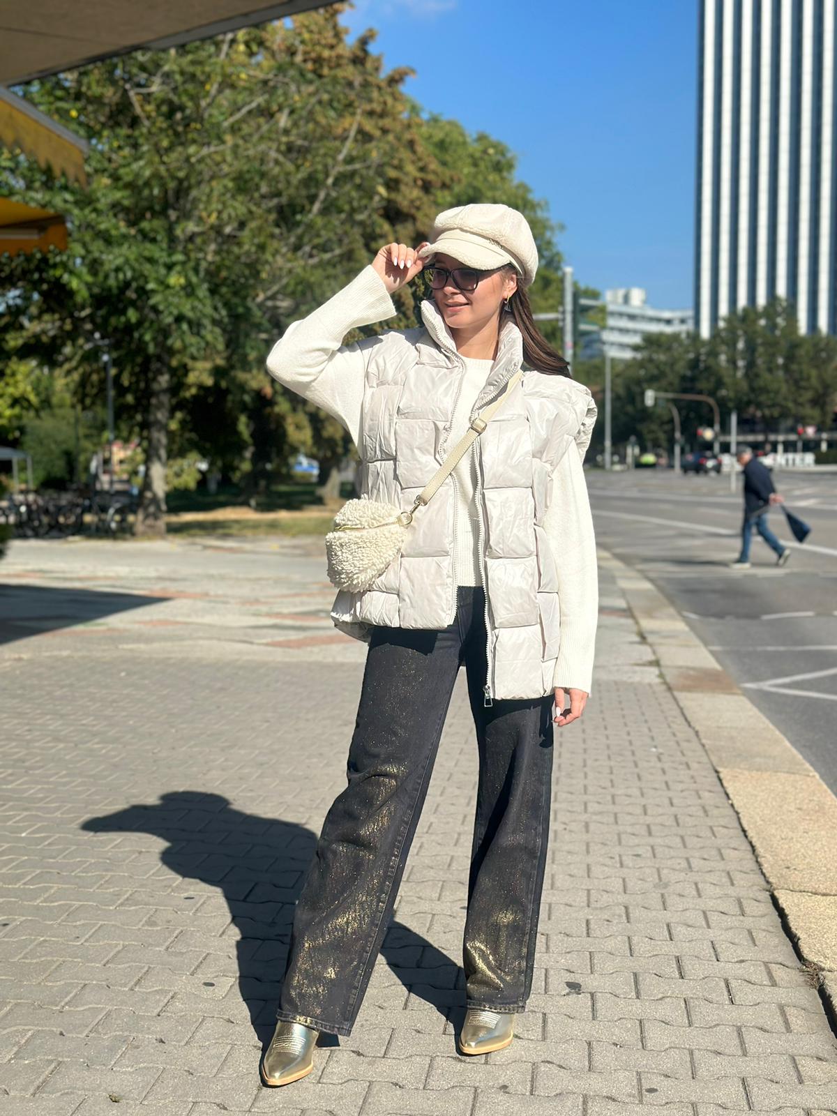 Modische Steppweste in Off-White